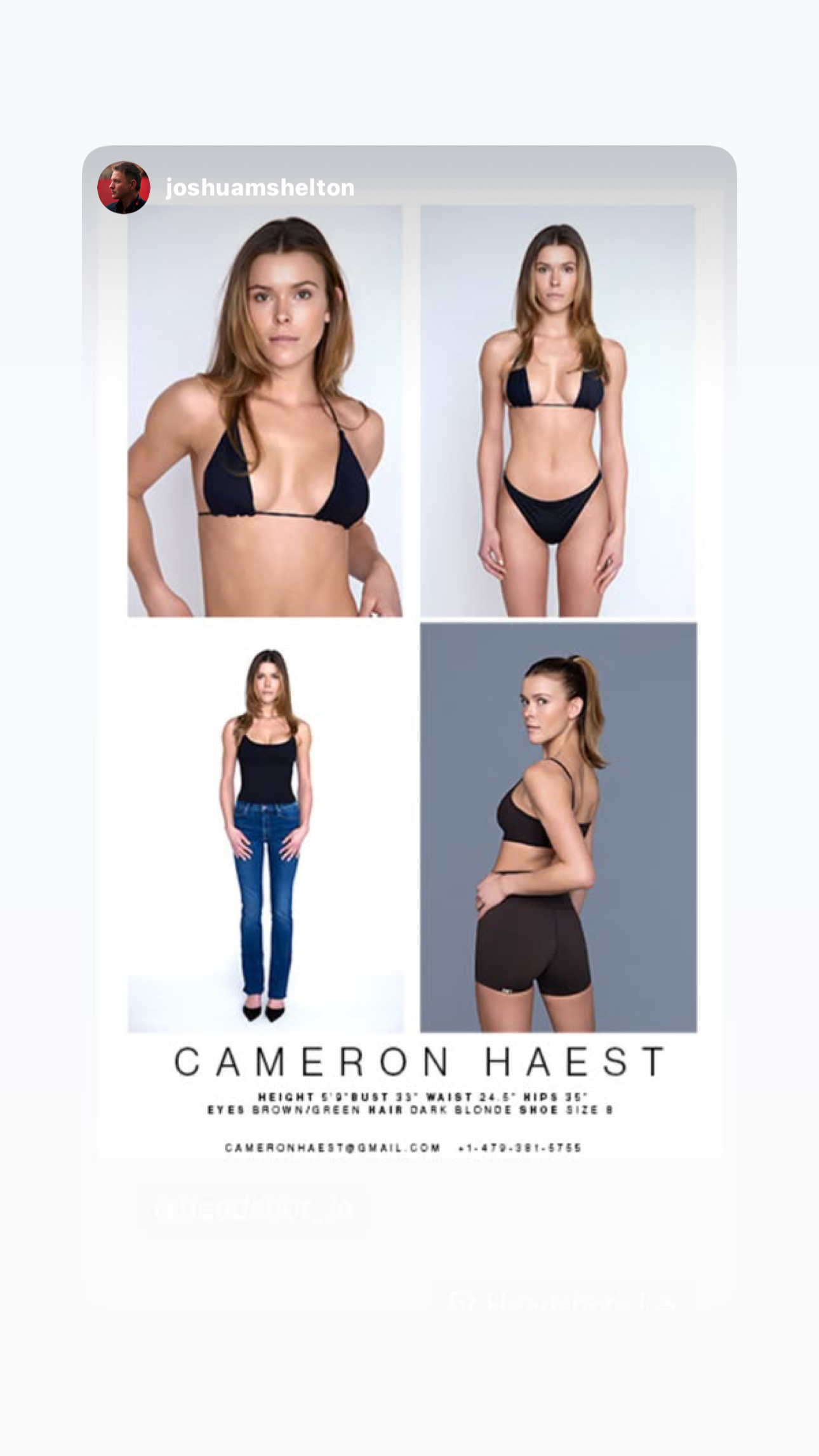 A Comp Card is designed with your name, measurements, contact info and 5 photos of your choice.